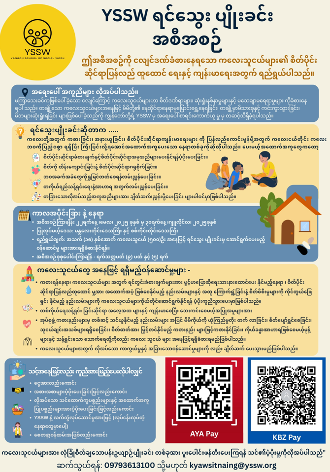 ကျွန်တော်တို့ Yangon School of Social Work (YSSW) မှ သတင်းကောင်းလေးတစ်ခု မျှဝေပေးလိုက်ပါတယ် ခင်ဗျာ။