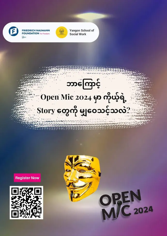 Open Mic နဲ့ ပတ်သတ်ပြီး သိလိုတဲ့မေးခွန်းတွေရှိရင်လည်း Yangon School of Social Work Facebook Page Messenger တိုက်ရိုက်ဆက်သွယ်မေးမြန်းနိုင်ပါတယ်။