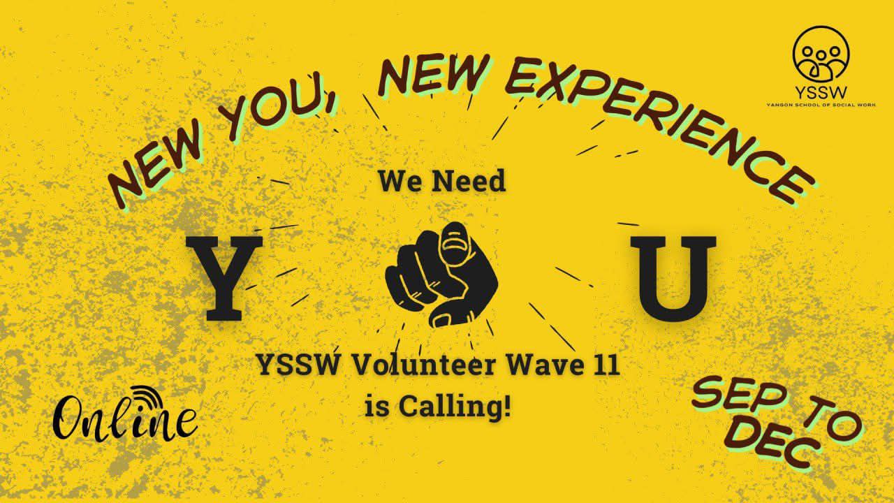 YSSW ,ဟာ လူမှုအကျိုးပြုလှုပ်ရှားမှုတွေမှာ ပါဝင်ကူညီပေးနေပြီး Social Work ဘာသာရပ်ကို သင်ကြားပေးနေတဲ့ ကျောင်းတစ်ကျောင်းဖြစ်ပါတယ်။ ဒါကြောင့် Social Work အကြောင်းကိုလေ့လာချင်တယ် ဒါမှမဟုတ် လူမှုအကျိုးပြုလုပ်ငန်းတွေကို စိတ်ဝင်စားတယ်ဆိုရင် သင်ဟာ YSSW ရဲ့ Volunteer အနေနဲ့ လူမှုအကျိုးပြုလုပ်ငန်းတွေမှာ ပါဝင်ကူညီနိုင်မှာ ဖြစ်ပါတယ်။ ဒီအခွင့်အရေးကနေ သင်ဟာ YSSW Volunteer Wave 11 ရဲ့ လူမှုအကျိုးပြု လုပ်ငန်းတွေမှာ ပါဝင်နိုင်ရုံသာမက၊ သင့်ရဲ့ အတွေ့အကြုံတွေကို တစ်ဆင့် မြှင့်တင်ပေးနိုင်မယ့် သင်ယူမှုအသစ်တွေကို ဒီ wave မှာ ရရှိနိုင်မှာဖြစ်ပါတယ်နော်။ ဒါကြောင့်မို့ သင့်အနေနဲ့ ဒီအခွင့်အရေးကို လက်လွှတ်မခံလိုက်ဖို့ တိုက်တွန်းလိုက်ပါရစေခင်ဗျာ။