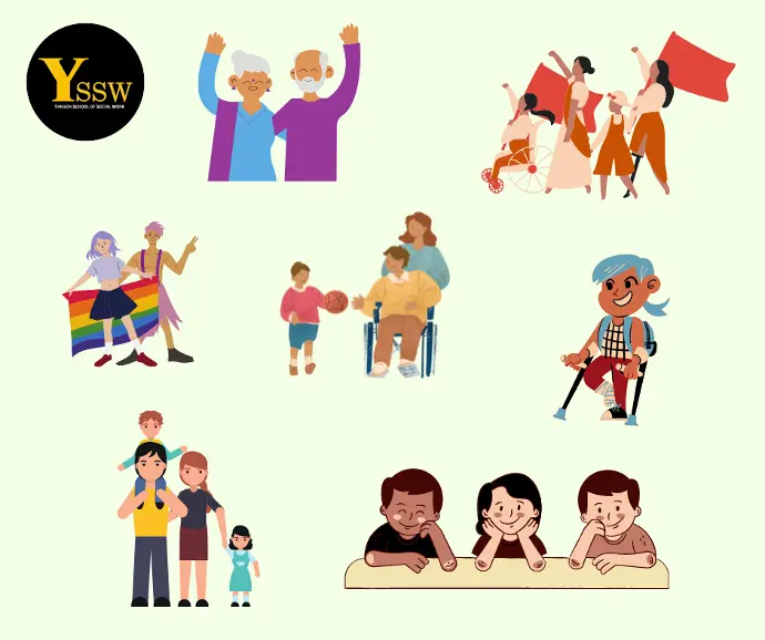အားလုံးပဲ မင်္ဂလာပါ။ ဒီနေ့မှာတော့ ကျွန်တော်တို့ အနေနဲ့ ဝေါဟာရအခေါ်အဝေါ်လေးတစ်ခုနဲ့ မိတ်ဆက်ပေးချင်ပါတယ်။ အဲ့တာကတော့ Social Work ဆိုတဲ့ ဝေါဟာရလေးပဲ ဖြစ်ပါတယ်။ Social Work ဆိုတာ ဘာလဲ??ဘယ်လိုအခန်းကဏ္ဍတွေမှာပါဝင်သလဲ??ဆိုတာကို ရင်းနှီးကျွမ်းဝင်လာအောင် ဒီနေ့ Post လေးကနေ စတင်ရှင်းပြပေးသွားမှာပဲဖြစ်ပါတယ်။